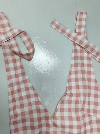 Full Size Gingham Halter Neck Maxi Dress Plus Size